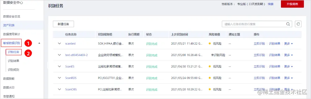 步骤 2 在左侧导航树中,选择“敏感数据识别 > 识别任务”,进入“识别任务”页面。