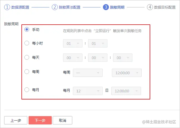 步骤 5 单击“下一步”,进入“脱敏周期”页面,配置脱敏周期。