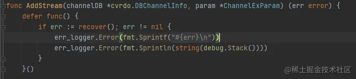 这种错误是典型的go指针声明后,没有对指针进行初始化而直接使用导致的错误。错误信息查看代码第516行AddStream函数,下面代码是表示这个函数是错误的关键,并保存成错误文件信息,所以此处不是错误的关键。