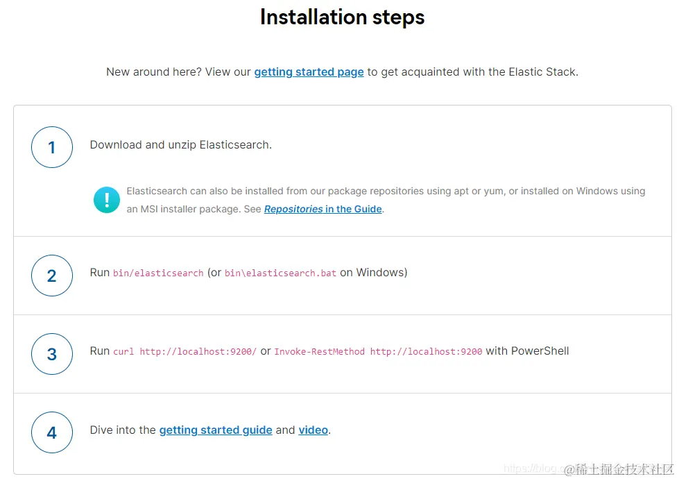1、docker安装:见我另一篇文章:blog.csdn.net/qq_41929184… 2、压缩包安装:Elasticsearch官网:www.elastic.co/cn/elastics…
