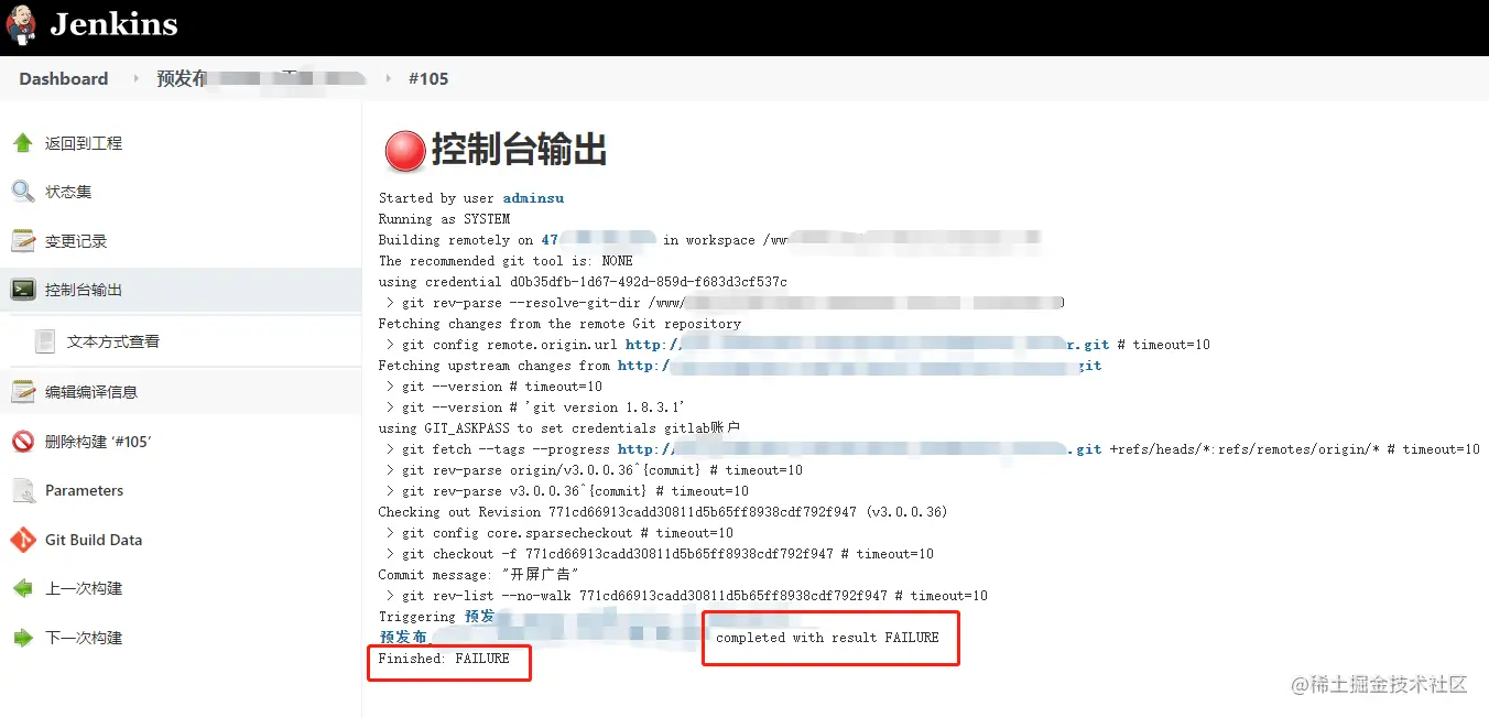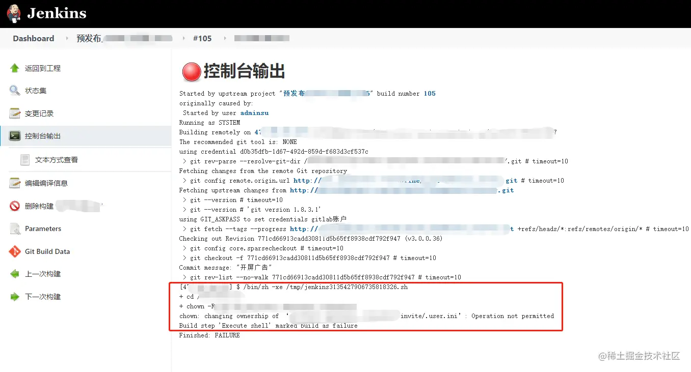 最近最近使用jenkins构建项目,服务端代码部署成功,但是返回状态始终是失败