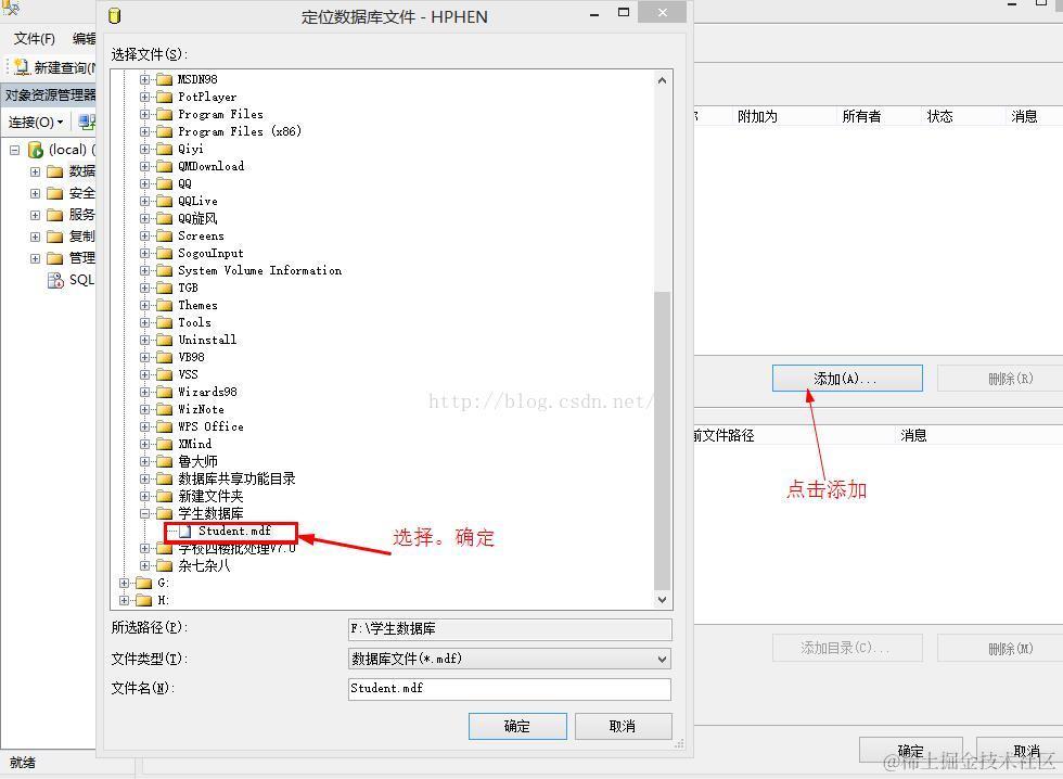 选择添加并在SQL源文件地址找到.mdfl类型文件>>>>确定添加