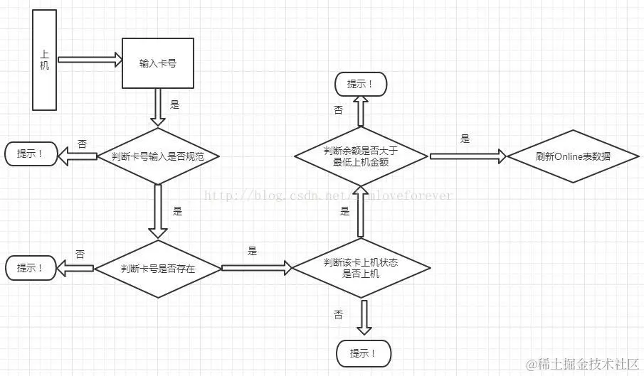 小结:上机这个点并不难,只是下机尤为复杂,因为要计算时间还要考虑日期,而且困难的是如何将各个表联系起来,在敲之前一定先做一个宏观的把控,先做什么后做什么,这样做起来也会很顺畅!