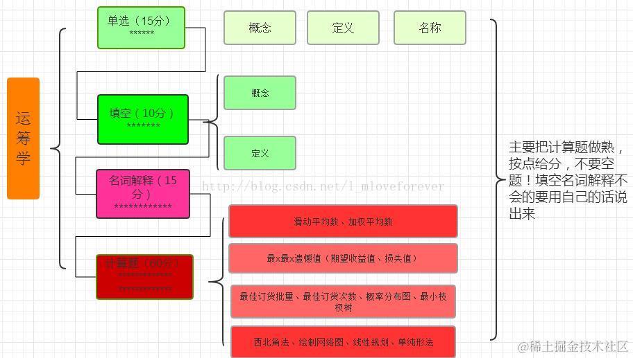 自考之路—运筹学阶段小结 Adam南帝梁 2021-11-15 203 阅读1分钟 【前言】 经过第一阶段的泛读和第二阶段的精度,大致了解了本学科的主要内容,并在第三阶段中做了两套真题,感觉概念型知识点比较多,所以需要一个关联性比较强的思维导图来联系知识点,构成知识网。 【思维导图】 \ 【小结】 在认真的做过一两套题后就是要大量的重复记忆,要做到一看题就知道用哪个公式怎么做。理解性的背诵概念定义,抓住单选、填空和名词解释的分,大题要都会做!!! \