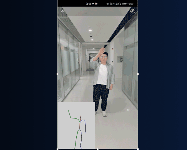 动作捕捉能力也只需要用到普通的手机,输入视频流或图像,就可以估计出人体骨骼,可以支持常见的站立、行走、奔跑等大概7到8个动作。