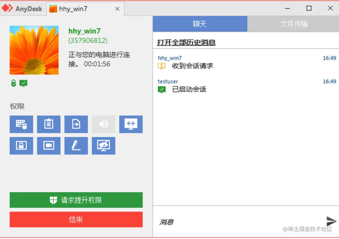 然后让目标机器运行anydesk,在连接即可