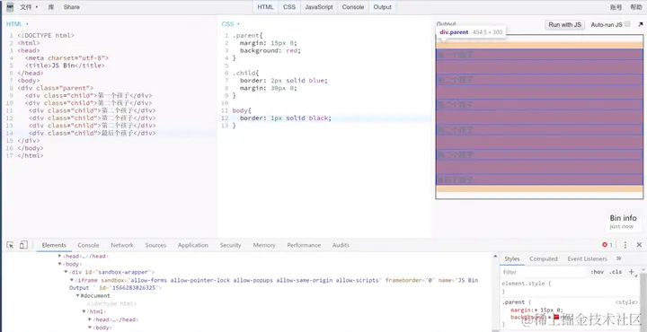 第1个子元素的上边距会与父母的上边距重叠,最后一个子元素的下边距会与父母的下边距重叠。