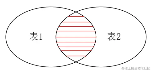 一般内联结可以用如下图进行表示,取两个表关联字段相同的部分。