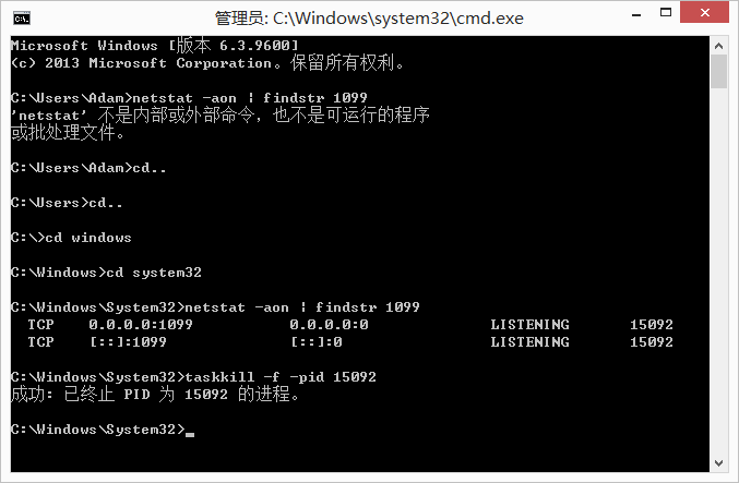 netstat -aon | findstr 1099