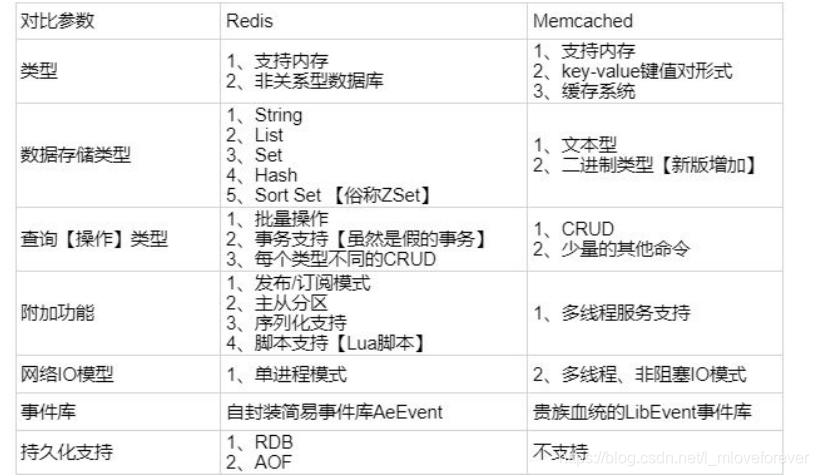 Redis不同于Memcached很重要的一点就是,Redis支持持久化,而且支持两种不同的持久化操作,而Memcached不支持持久化。