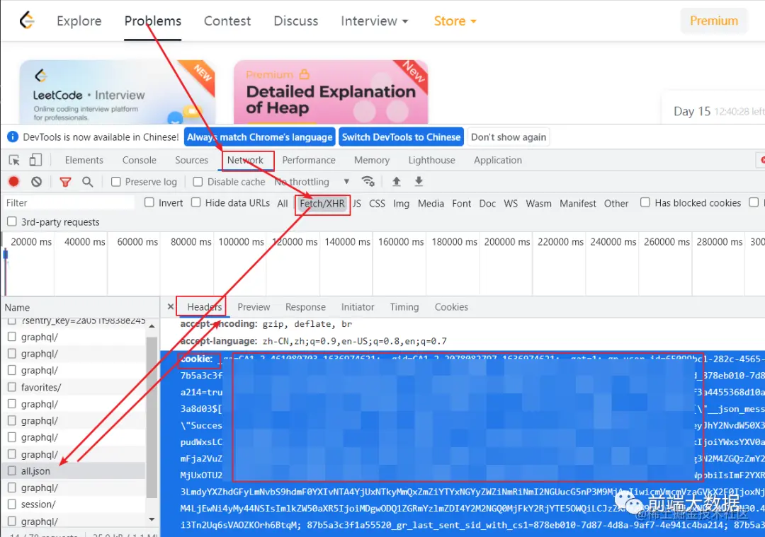 如下图,安装指示依次点击,就可以找到cookie 并复制,用于后面的vscode登录leetcode