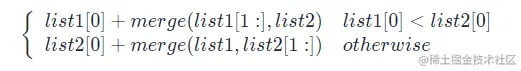 我们可以如下递归地定义两个链表里的 merge 操作(忽略边界情况,比如空链表等):