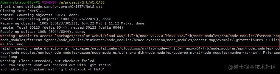 错误3: clone仓库报错,报错原因是存在长路径,但是没有设置git 属性