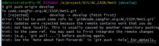 解决方法 : 原因是由于远程仓库该分支已经有修改,git需要你先同步远程分支 ,才能push 上库