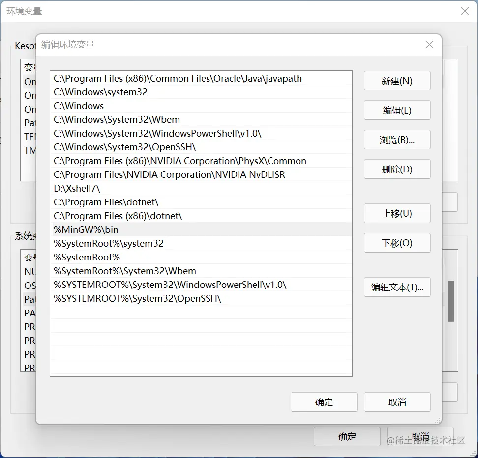 - 添加系统环境变量PATH的值为 "C:\MinGW\bin" 图为另一种配置方法