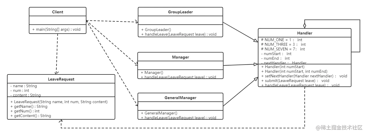 groupLeader.setNextHandler(manager);//小组长的领导是部门经理