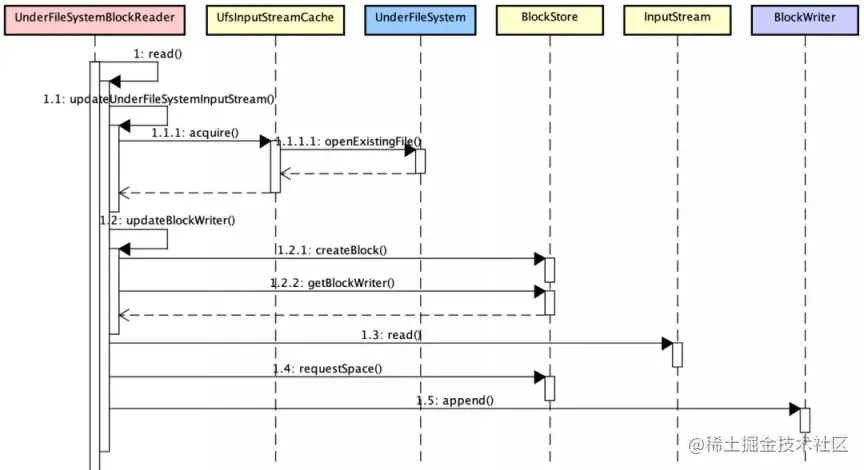 - 输入流:AlluxioFileInStream:Alluxio 输入流读取,封装了本地/远端节点数据读取,或者直接基于底层 UFS;底层操作 BlockInStream,LocalCacheFileInStream,AlluxioHdfsInputStream