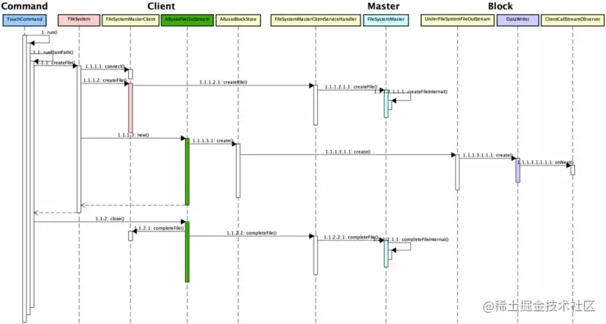 以 TouchCommand 为例,简述 Alluxio Client 进行文件写入的大致流程如: