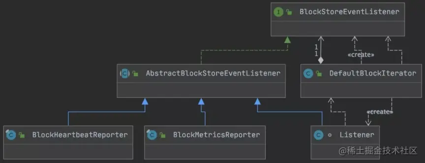 BlockClient 抽象类定义调用方对 Block 基本的读写操作,其类图示意如下,主要包括:BlockWriter、BlockReader。