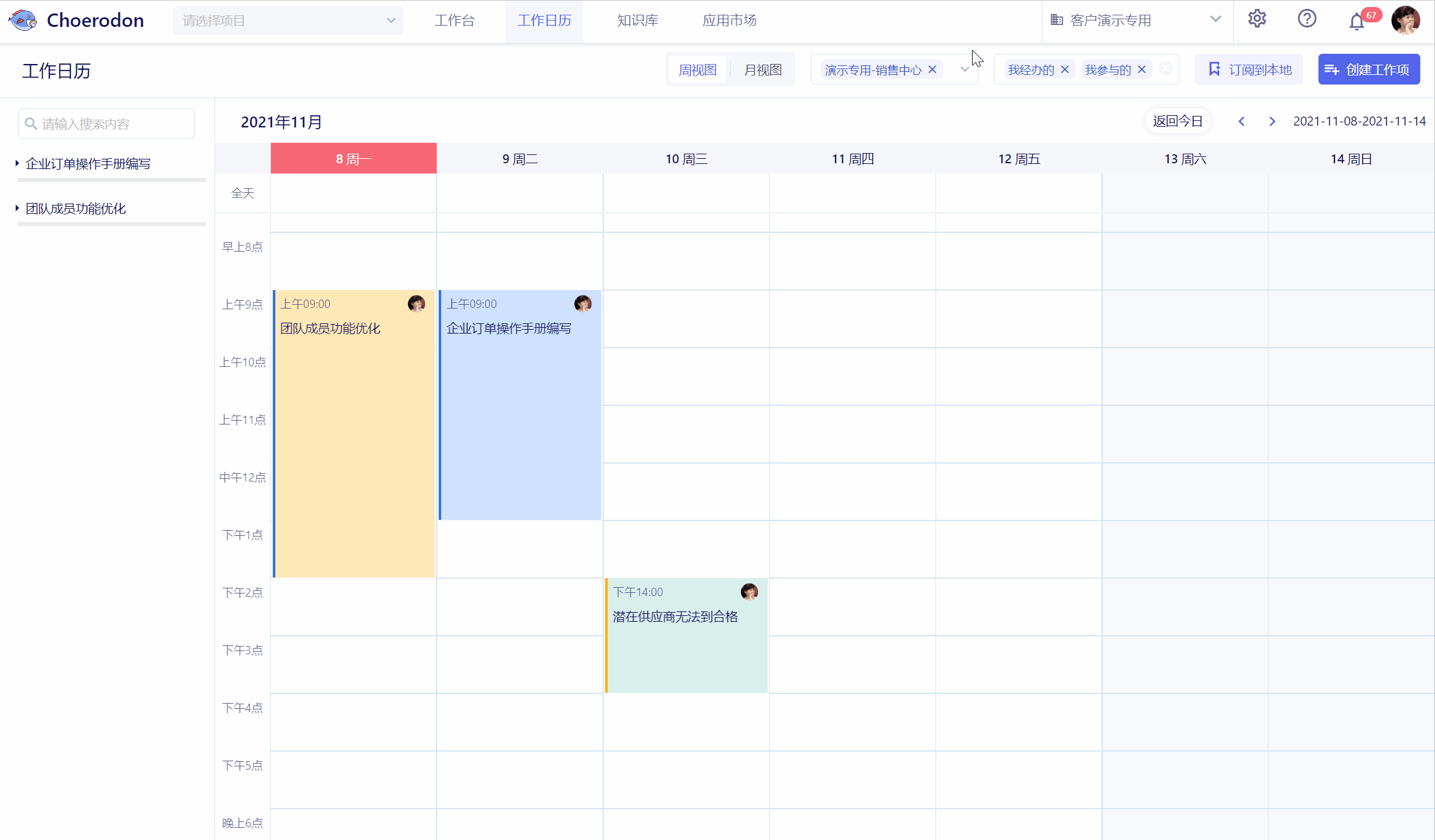 - 全新上线的工作日历,使工作日程尽在掌握,让工作安排有条不紊