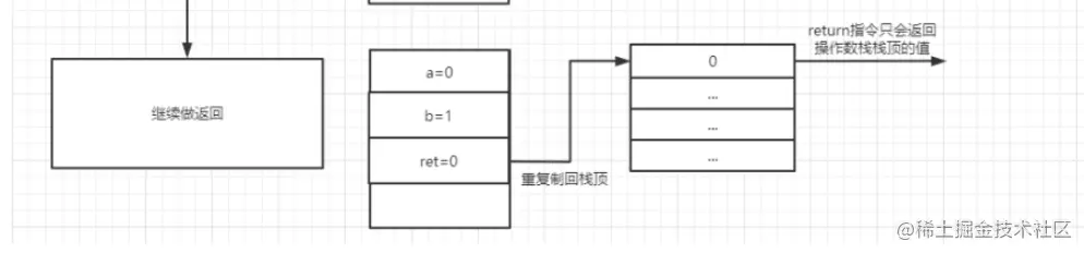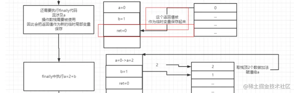 A:原先准备返回的值会被作为局部变量存起来, 接着为了做计算,会取出a和b放到操作数栈中做计算