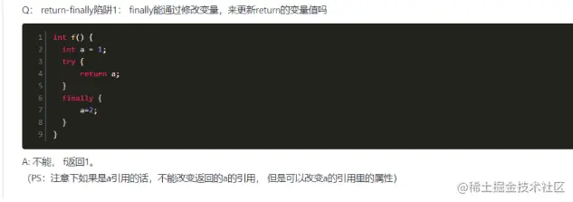 因此,finally里对返回变量的修改,无法修改真正的返回值。除非在finally里再执行return操作,这时候就会更改返回值。