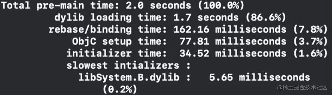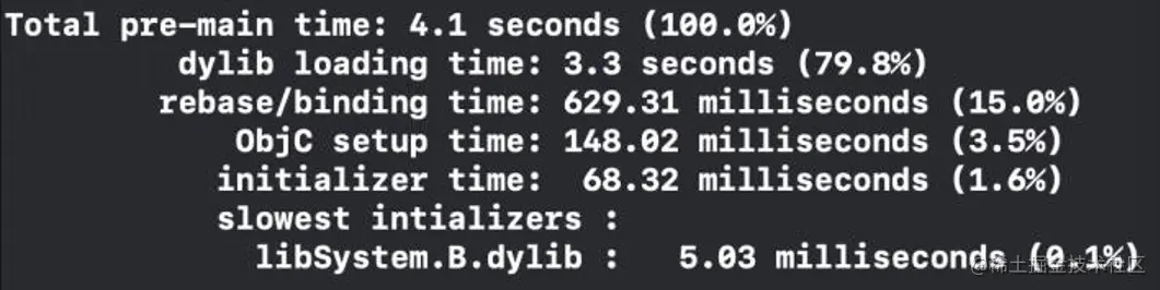 1、尽量不使⽤内嵌的dylib,从⽽避免增加 `Load dylibs`开销