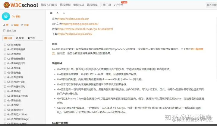 这个网站,大多数编程爱好者应该都听过,学习过 Java 编程的朋友应该也比较熟悉了,这个网站中也有 Go 语言教程,特别适合新手。