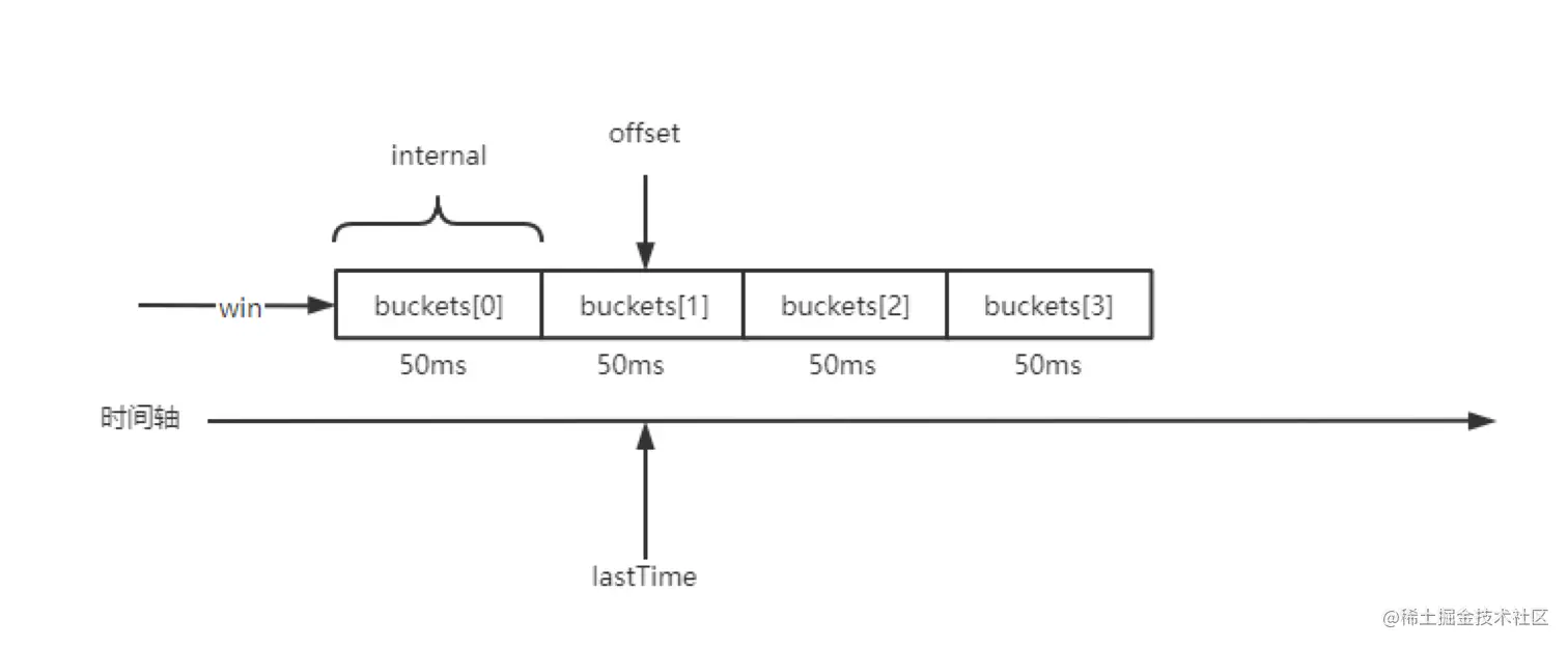 - 无论什么熔断器都得依靠指标统计来转换状态,而统计指标一般要求是最近的一段时间内的数据(太久的数据没有参考意义也浪费空间),所以通常采用一个 滑动时间窗口 数据结构 来存储统计数据。同时熔断器的状态也需要依靠指标统计来实现可观测性,我们实现任何系统第一步需要考虑就是可观测性,不然系统就是一个黑盒。