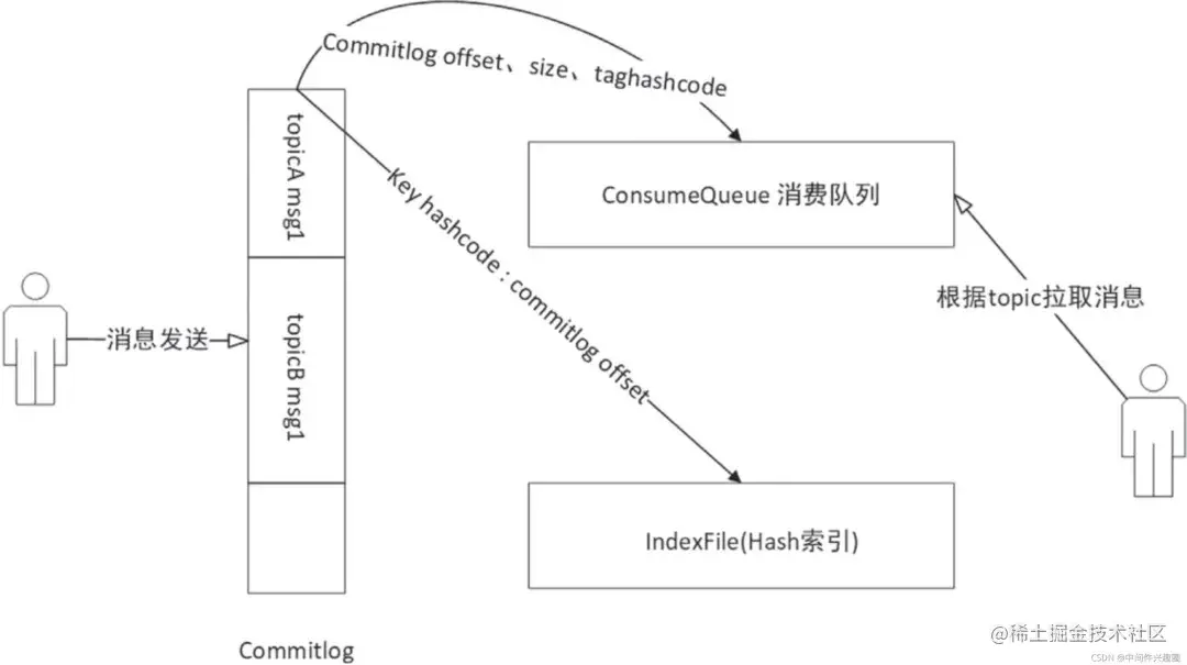 即建立了索引 Key 的 hashcode 与物理偏移量的映射关系,根据 key 先快速定义到 commitlog 文件。
