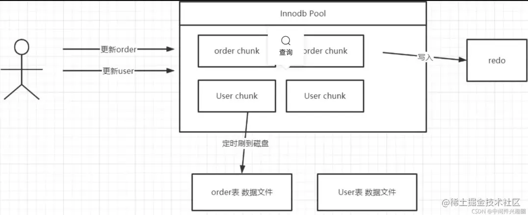 为什么不一有数据变更,就直接更新到指定的数据文件中呢?以 MySQL InnoDB 中一个库存在上千张,每一个张的数据会使用单独的文件存储,如果每一个表的数据发生变更,就刷写到磁盘,就会存在大量的随机写入,性能无法得到提升,故引入一个 redo 文件,顺序写 redo 文件,从表面上多了一步刷盘操作,但由于是顺序写,相比随机写,带来的性能提升是非常显著的。