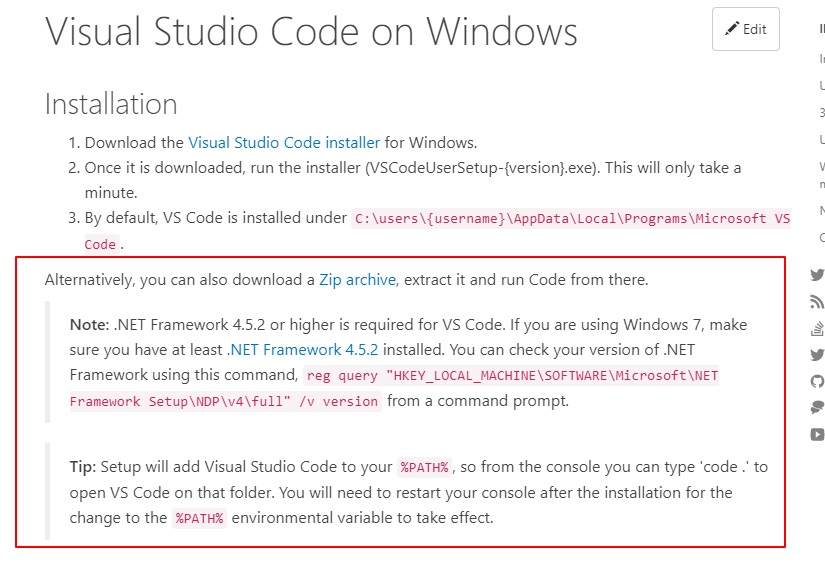 上面这句话中文意思:Note: .NET Framework 4.5.2 or higher is required for VS Code. If you are using Windows 7, make sure you have at least .NET Framework 4.5.2 installed. You can check your version of .NET Framework using this command, reg query “HKEY_LOCAL_MACHINE\SOFTWARE\Microsoft\NET Framework Setup\NDP\v4\full” /v version from a command prompt.上面这段话是摘自VsCode官网,前往 dotnet.microsoft.com/download/do… 下载安装 .NET Framework 4.7.2 或者更高版本。可见 VS Code 要求 .NET Framework 高于 4.5.2,我们安装版本更高适用面更广的 .NET Framework 4.7.2 即可完美解决 Win 7 下 VS Code 黑屏的问题。