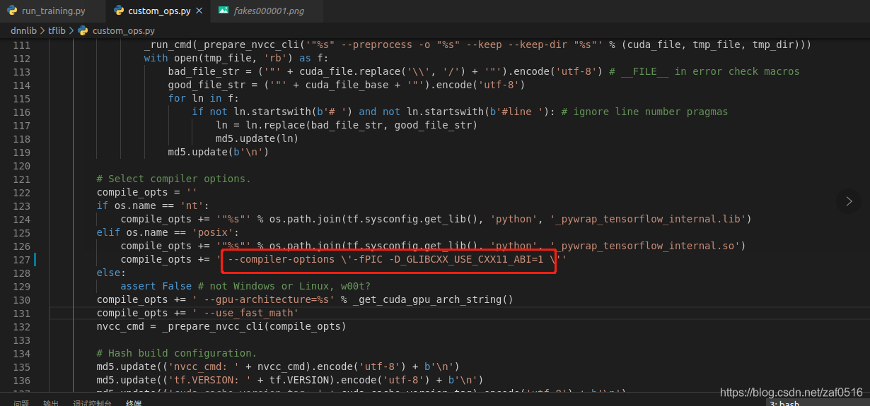 导致这个问题,主要是在生成so包过程中,主要是由gcc编译选项问题导致的,gcc版本大于 4,本身支持c11标准,则不需要选项-D_GLIBCXX_USE_CXX11_ABI = 0;打开custom_ops.py中127行--compiler-options \'-fPIC -D_GLIBCXX_USE_CXX11_ABI=0,改为--compiler-options \'-fPIC -D_GLIBCXX_USE_CXX11_ABI=1,即可如下图所示: