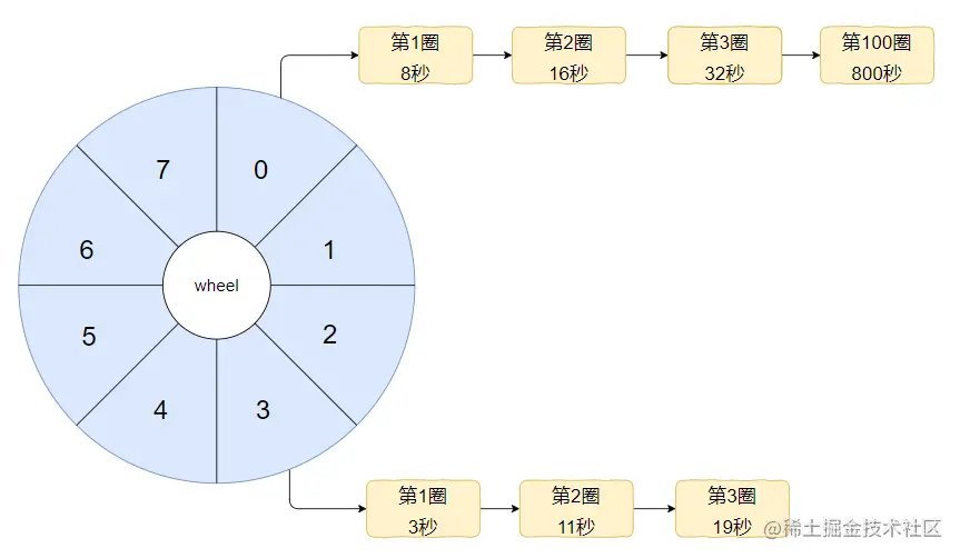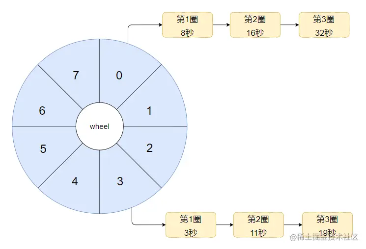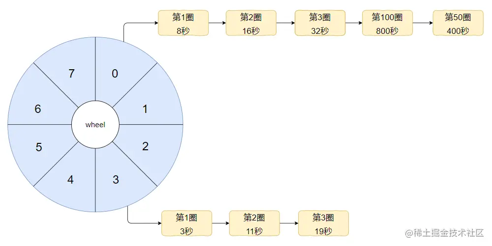 给大家画一下时间轮的基本样子,理解了时间轮的工作原理,下面的源码解析理解起来也就相对轻松一点了。