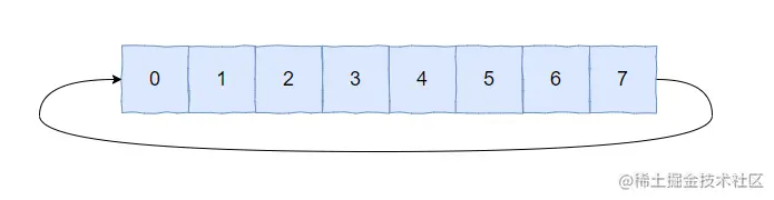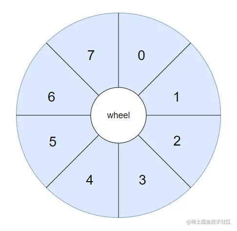 首先时间轮最基本的结构其实就是一个数组,比如下面这个长度为 8 的数组:
