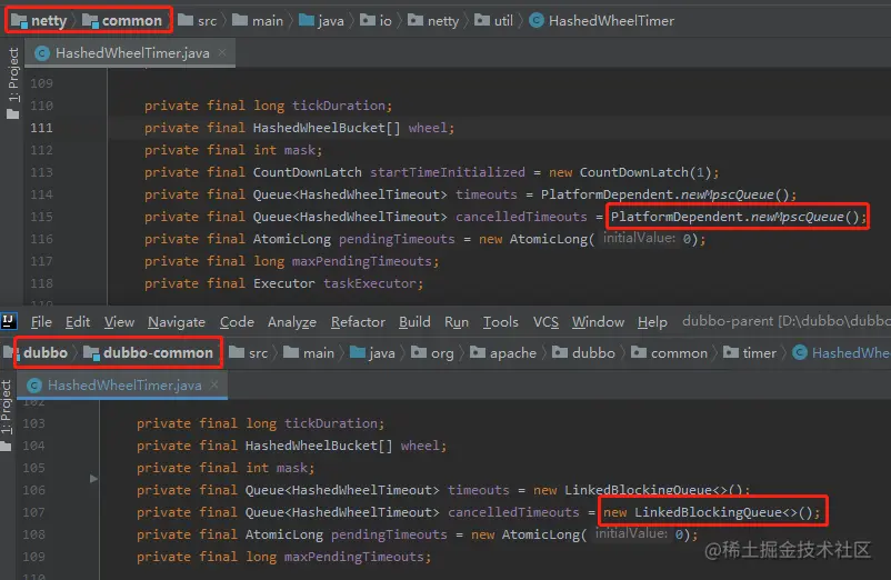 而且,Dubbo 的时间轮也是从 Netty 的源码里面拿出来的,基本一模一样。