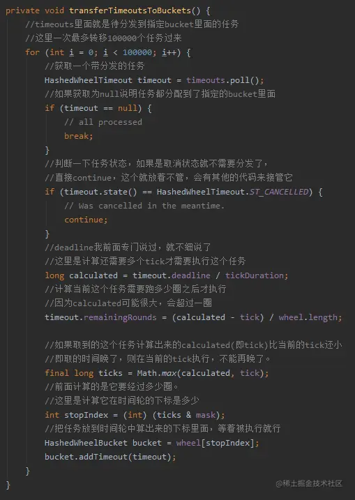 主要看看它下面的这一行代码 transferTimeoutsToBuckets()