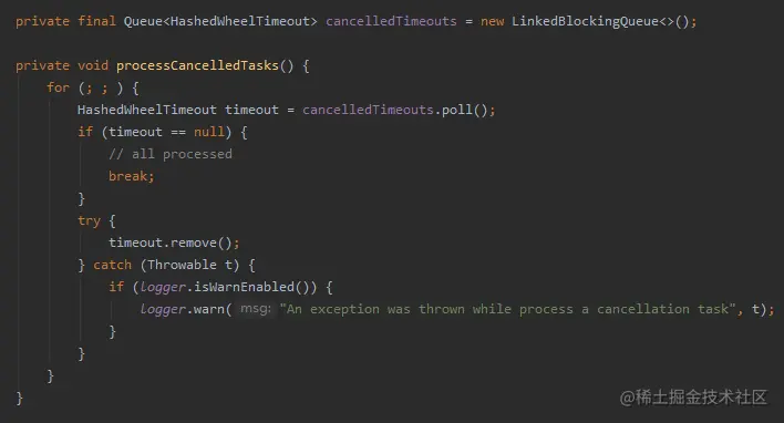 接下来我们逐行看一下循环里面的逻辑,这部分逻辑就是时间轮的核心逻辑。