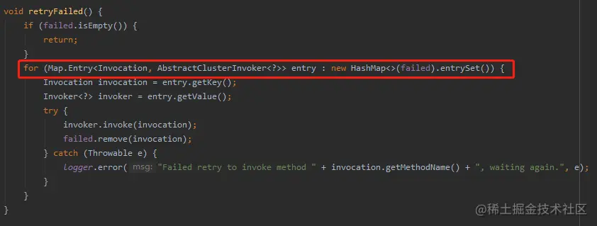 在这个方法里面会去遍历 failed 这个 map,全部拿出来再次调用一遍。