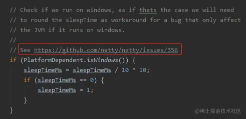 下面就到了标号为 ② 的地方,看起来是对 windows 操作系统进行了特殊的处理,要把 sleepTimeMs 换算为 10 的倍数。