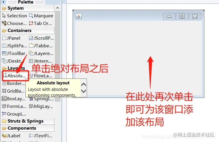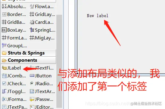 用这种方法,我们接下来添加两个 JTextField、一个JButton,如下图示(可以按照自己的想法调整大小和位置)