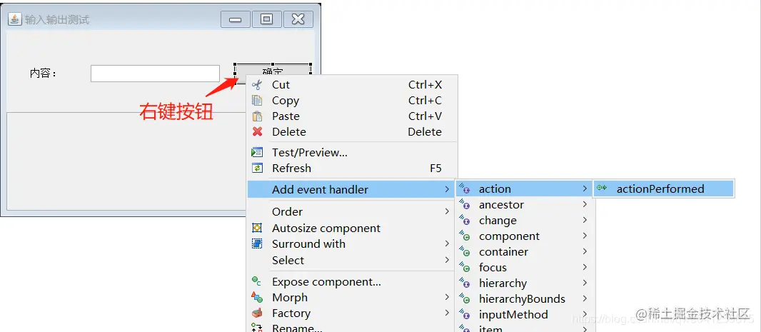 此处的顺序取决于你添加控件时先添加按钮还是先添加下方的文字域,由于我先添加了按钮,所以要先把它们的位置调换一下。