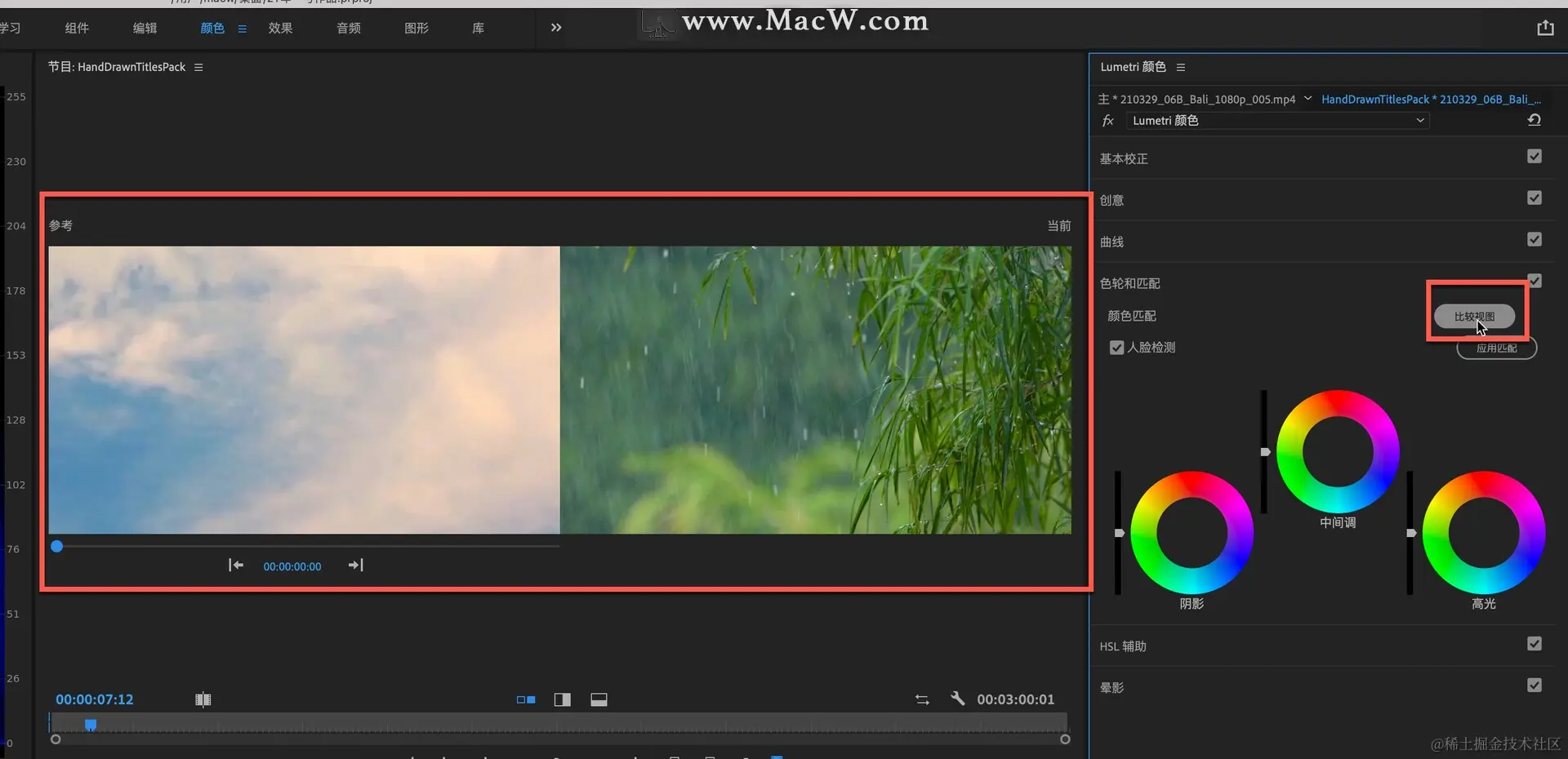 打开Premiere,在lumetri颜色中,找到色轮和匹配并展开