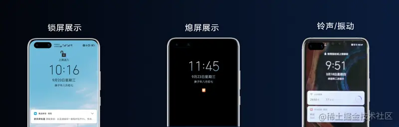增强提醒有什么优势呢?常规的通知都在信息栏体现,我们则可以做更加醒目的提醒,比如在锁屏提醒,又比如在手机熄屏时将推送通知展示在时间、天气的位置上,提醒消费者解锁查看内容,再比如通过铃声振动方式更好地提醒手机用户有通知消息。