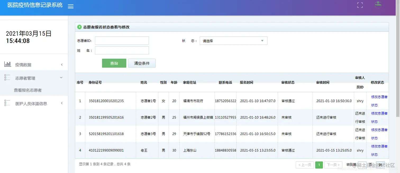 审核 员:查看疫情数据,查看医护人员体温信息,志愿者管理功能。