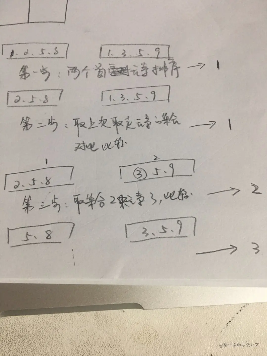 第三步: 再次取出两个集合的首元素, 比较, 左侧小--->2