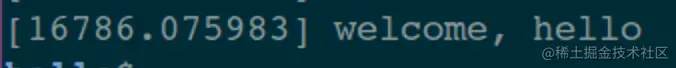 此时终端窗口是没有任何输出的,需要输入指令 dmesg | tail ,可以看到 hello_init 函数的输出内容: