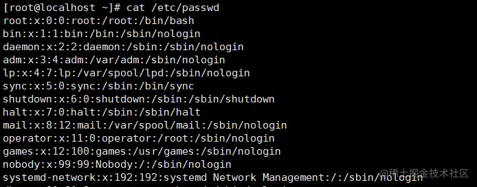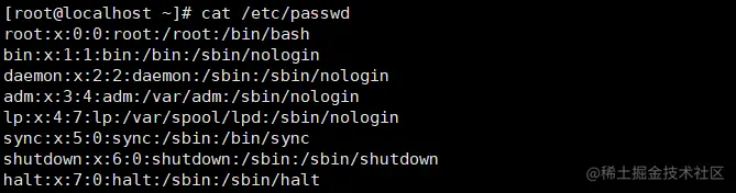 Linux 系统中的每个用户都在 /etc/passwd 文件中有一个对应的记录行,它记录了这个用户的一些基本属性: