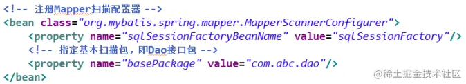 - Mapper 扫描配置器 MapperScannerConfigurer 会自动生成指定的基本包中 mapper 的代理对象。该 Bean 无需设置 id 属性。value使用分号或逗号设置多个包。