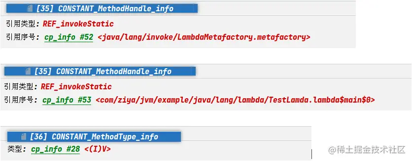 3、常量池中还会出现两个JVM_CONSTANT_MethodHandle,一个JVM_CONSTANT_MethodType。